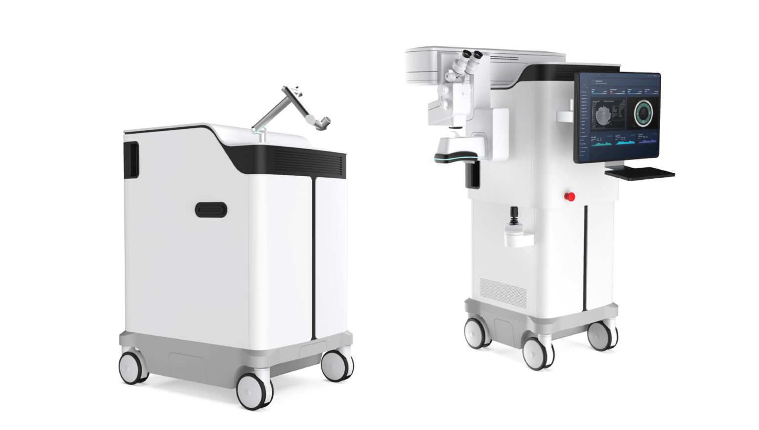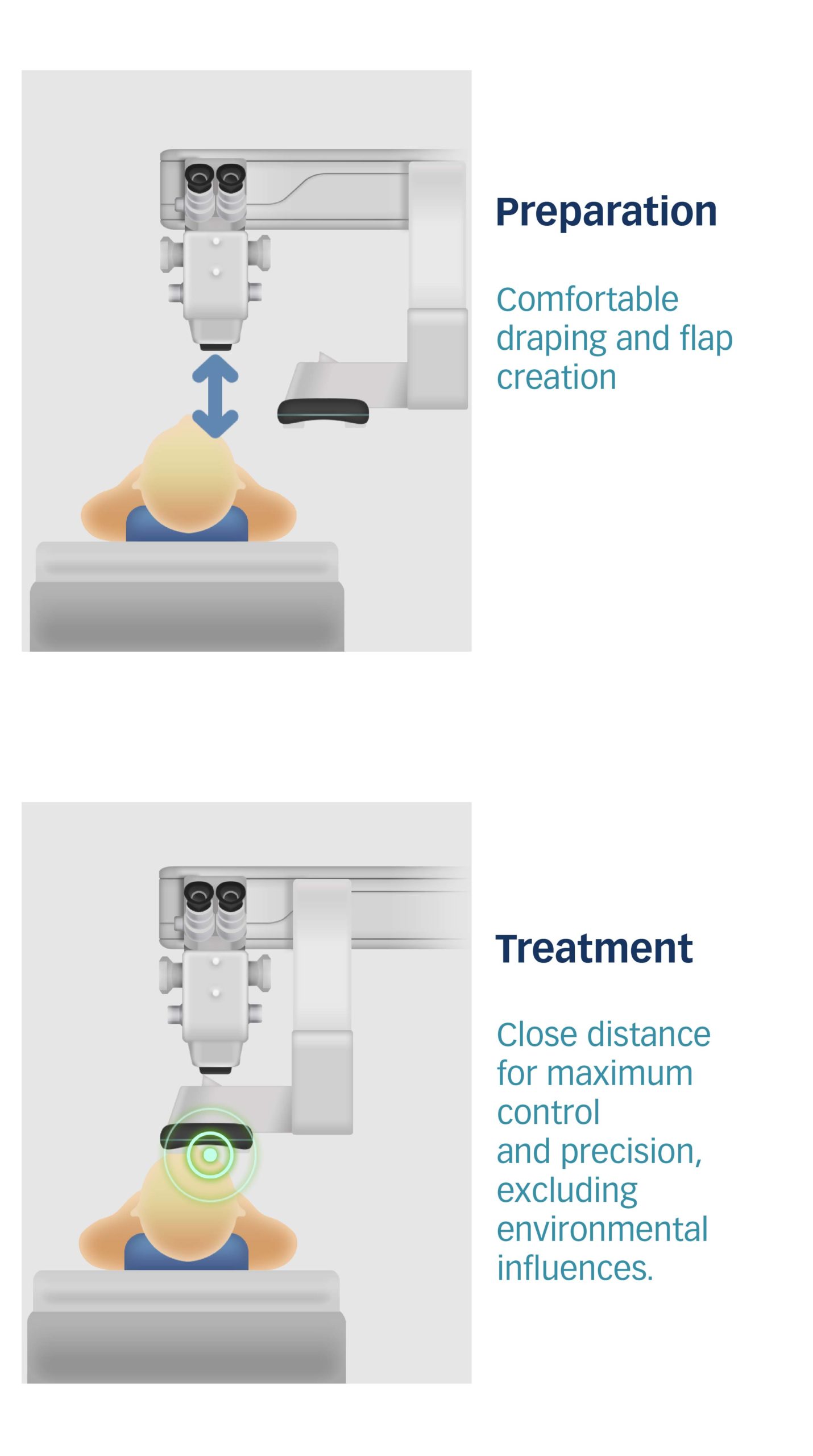 Наша цель — представить самую компактную эксимерлазерную платформу. Для этого мы отказались от необходимости использования моторизованного операционного стола. Вместо этого мы подводим лазерный луч к глазу через специально разработанный мобильный аппликатор, закрепленный на роботизированной консоли.